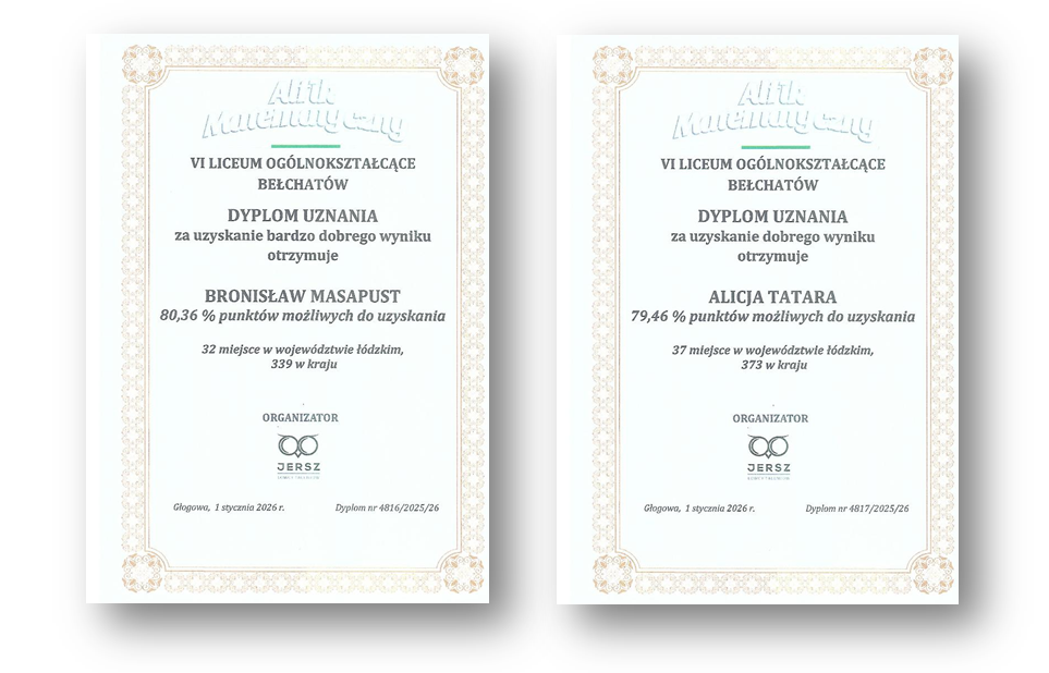 W listopadzie 2025 r. odbyła się XXXI edycja Ogólnopolskiego Konkursu Alfik Matematyczny. W matematycznych potyczkach wzięło udział 3635 uczniów szkół ponadpodstawowych z całej Polski. Dyplomy...